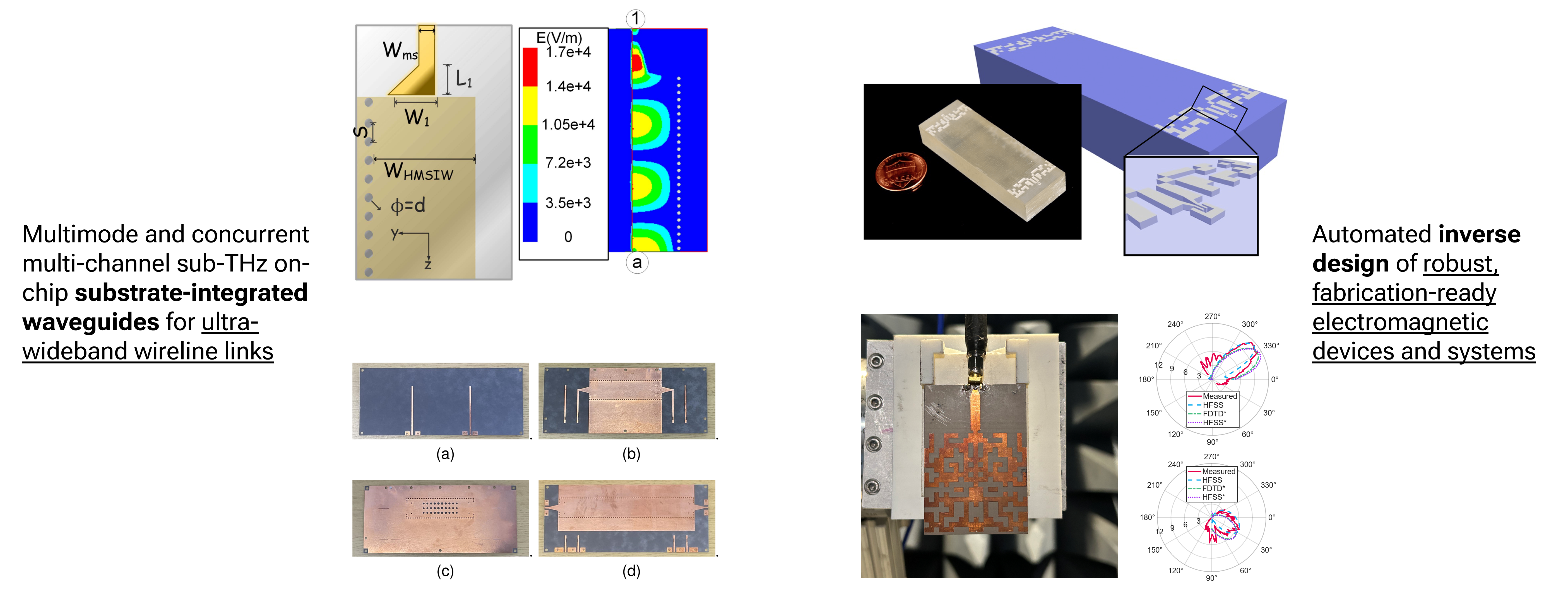 With the expansion of cellular communication and wireless technologies in the past decade, bandwidth and energy demands on wireless and wireline networks have been increasing rapidly. We are interested in designing new integrated antenna systems and exploring alternative communication mediums, such as plastic waveguides, to address these challenges. To this extent, we also develop new computational methods for efficient modeling and optimization of these communication systems.